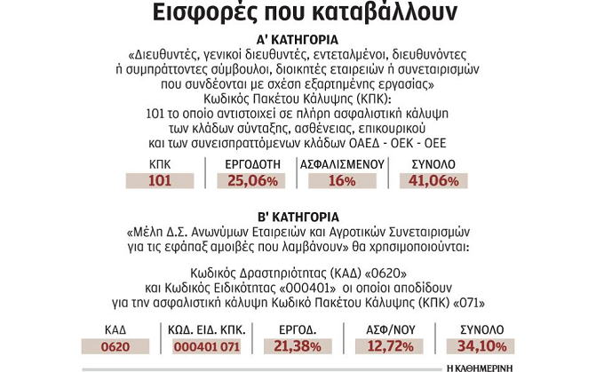Εγκύκλιος του ΕΦΚΑ καθορίζει αναλυτικά το ύψος των εισφορών και τα πακέτα ασφαλιστικής κάλυψης που αφορούν τα μέλη διοικητικών συμβουλίων που παρέχουν εξαρτημένη εργασία. Η εγκύκλιος αφορά διευθυντές, γενικούς διευθυντές, εντεταλμένους, διευθύνοντες ή συμπράττοντες σύμβουλους καθώς και διοικητές εταιρειών ή συνεταιρισμών, εφόσον συνδέονται με σχέση εξαρτημένης εργασίας για τις εισπραττόμενες αμοιβές.